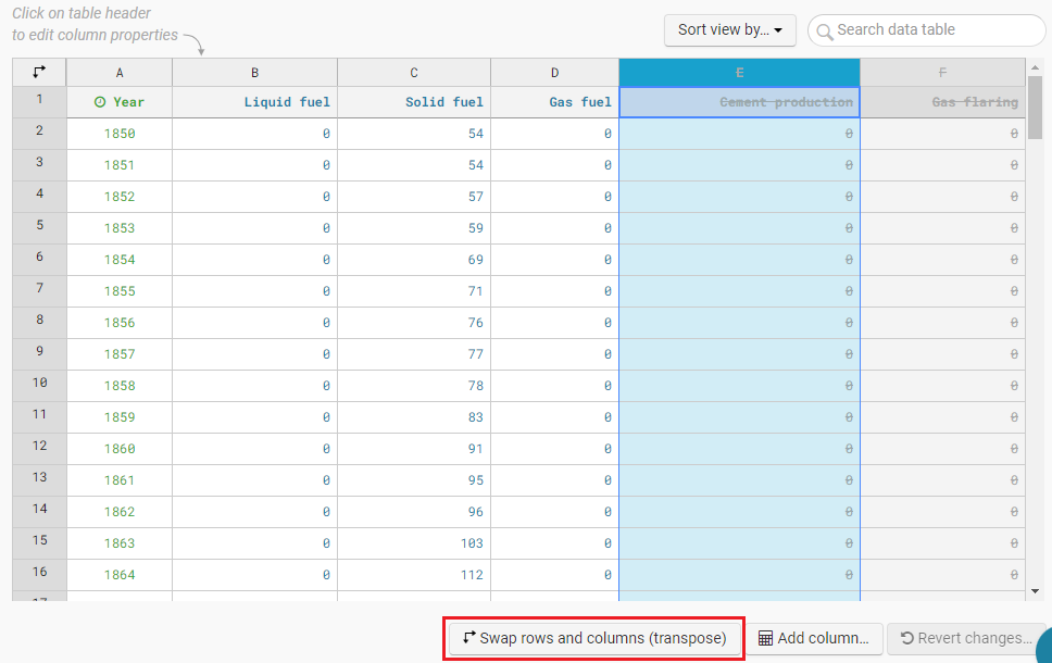 Le bouton « Swap rows and columns (transpose) », en bas du tableau, permet quant à lui d’inverser les lignes et les colonnes.