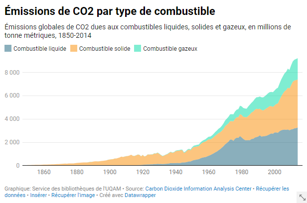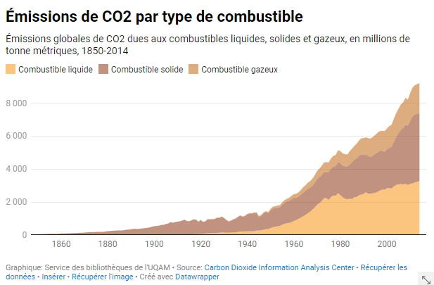 Dans ce scénario, nous allons publier un graphique en aires représentant les émissions mondiales de CO2 par type de combustible sous la forme d’un élément de cadre intégré HTML. Le but étant que les utilisateurs et utilisatrices du site de publication puissent interagir avec la figure.