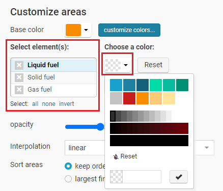 Vous pouvez aussi attribuer une couleur distincte pour chaque élément de votre figure. Pour ce faire, sélectionnez un élément à la fois dans la colonne de gauche « Select element(s) » et cliquez sur le bouton « Choose a color ».